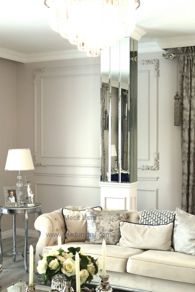 Salon ve misafir odalarında duvar-tavan çıtası ve diğer dekorasyon fikirleri,eşyalarınız göz önünde bulundurularak aşırı yoğun olmayan makul miktarda çıta kullanılarak tasarımı yapılmalıdır.Böylece yıllarca zevkle kullanabilirsiniz.