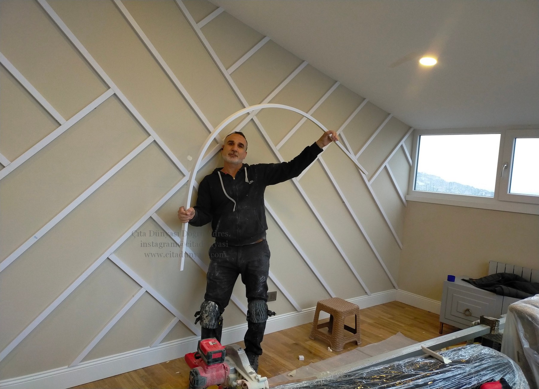 Asimetrik duvar çıtaları daha çok asimetrik alanlarda duvar yüzeylerinden veya kullanılan eşyların asimetrik konumları dikkate alındığında simetrik olmayan çalışmalar gerektirebilmektedir.