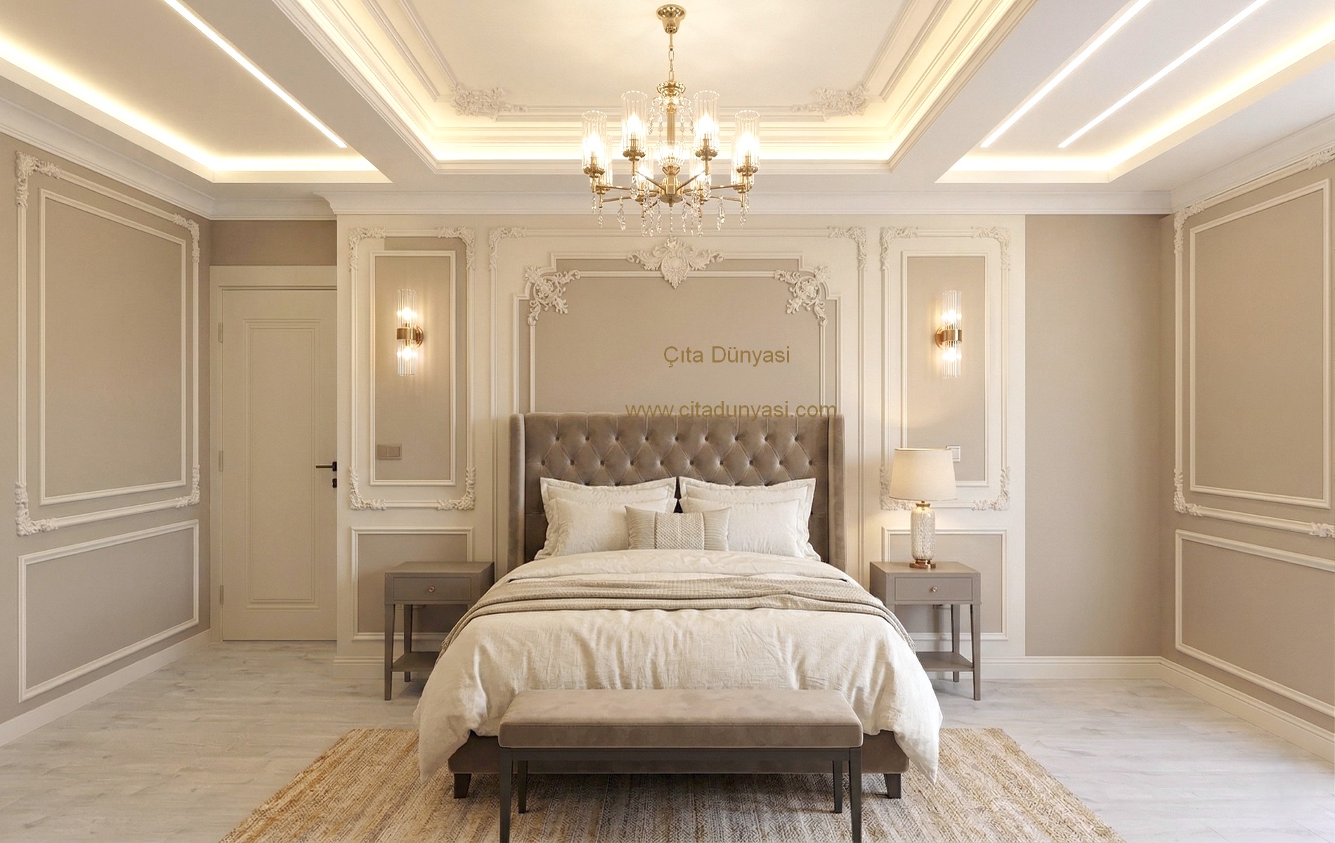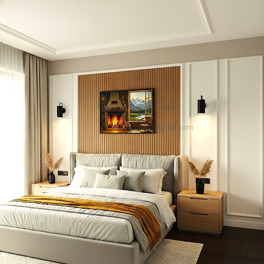 Yatak odasında Duvar çıtası çalışmalarında yatak,baza,aplik lerin ölçüleri dikkate alınarak mimari tasarım yapılmalıdır.Öncelikle beğendiğimiz modelin duvara uyumu sağlanmalıdır.duvar çıta modelini belirledikten sonra elektrik alt yapısı uygun hale getirilmeli ve kullanıma uygulaştırılmalıdır